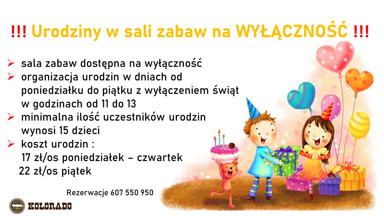 Rezerwacje urodzin pod nr tel 17 77 111 55 lub 607 550 950